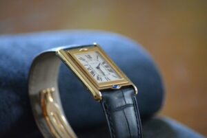 The deconstruction of the form is not a unique thing in the design of object, architecture, fashion. Relatively to the watch world we can recall few spared examples that are more or less known. Strangely their process of design deconstruction, the form of the case, is less understood or known. One such example is the Cartier Tank Basculante, a Creation of the genius of the cases’ watch: Louis Cartier. Such a shape is the representation of deconstructivism, but in this instance “dynamic”. In movement. Indeed the real dissection of the form is within the act of folding and flipping the dial side. The moment in which the watch is set to change face -for protection- this is the only moment in which the watch exposes its real dynamic and tridimensional nature. A floating volume in space moves out from from the main case to acrobatically revolving around an orthogonal axis to the 6-12 axis.